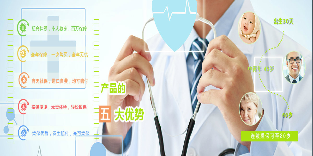 一次购买,全年无忧 ;无需体检,轻松投保;进口自费,均可赔付;发生赔付,亦可续保; 个人独享,百万保障。